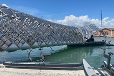 The transition of the moving object had to be carefully controlled in order to avoid clashing with the gallery arches. We oversaw the fabrication and installation of the artwork.